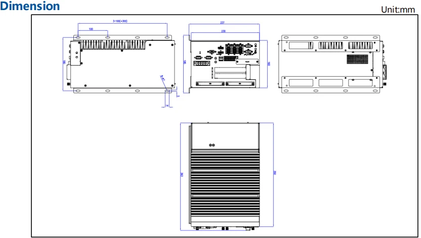 Expansion | 1*Full size Mini PCIe with PCIe +USB signal and SIM slot, support 4G LTE/Wifi/BT wireless module 1*M.2 E-Key 2230 &SIM solt 1*M.2 B-Key 3052, support 5G 1*M.2 2280 M-Key(PCIeX4signal) 1*PCIe X16, support 350W GPU (the length of the GPU must be less than 300mm) 1*PCIe X4 (in X16 slot), support 75W AI Module (the length of the module must be less than 300mm) | |
