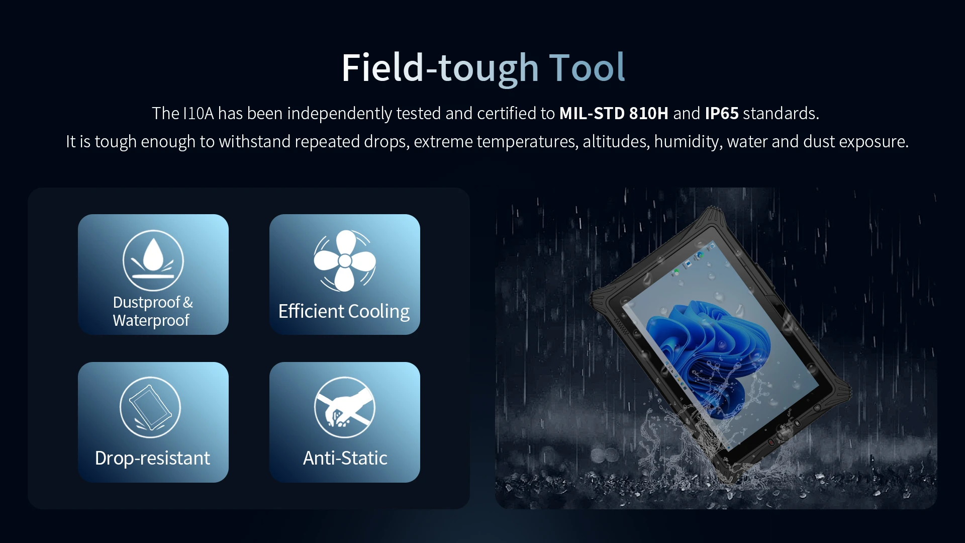 | 10.1" Rugged Windows 11 Tablet with Intel Core i5/i7: IP65/MIL-STD-810G certified and Triple GNSS (GPS/BDS/GLONASS) for industrial, logistics and harsh environments.