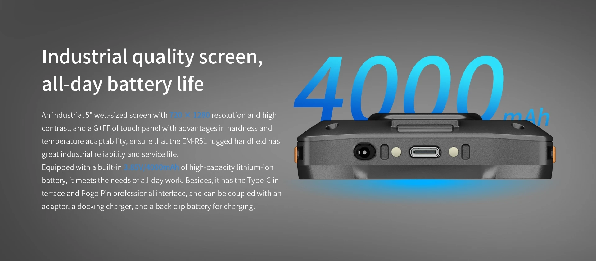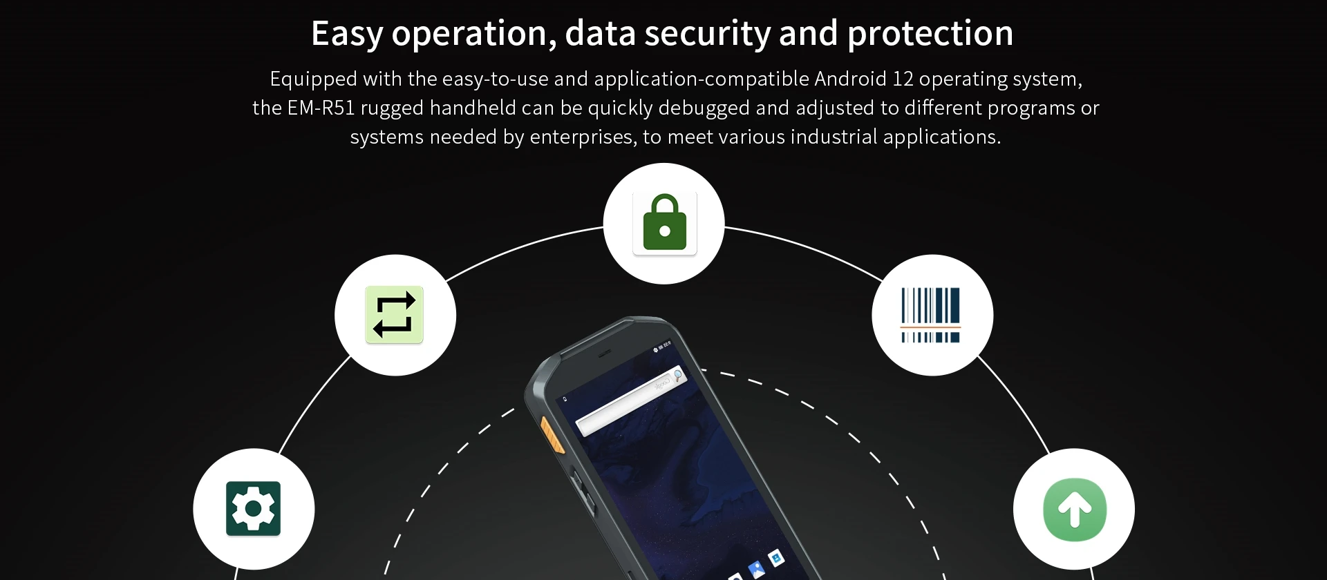 Rugged Android 12 Mobile Device with 7-Hour 4000mAh Battery, IP65/MIL-STD-810H Certification, Dual GPS/Beidou Positioning, 8MP Auto-Focus Camera.
