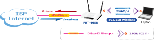 | FRT-405N | 802.11n Wireless Internet Fiber Router (4 x RJ45, 1 x mini-GBIC, SFP) |