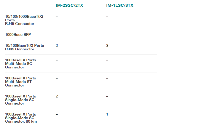 The IM Module Series has been designed for Moxa's EDS-728 Series and EDS-828 Series modular switches. The IM Module Series includes 6 Fast Ethernet modules, each with 4 ports supporting the TX, MSC, SSC, and MST media types. In addition, the IM Module Series includes 2 Gigabit Ethernet modules, one with 2 copper ports, and one with 2 fiber ports. Multiple modules can be used with the EDS-728 and EDS-828 switches, allowing each switch to support up to 24 Fast Ethernet ports and 4 Gigabit Ethernet ports.