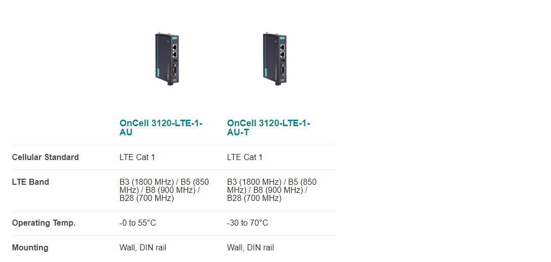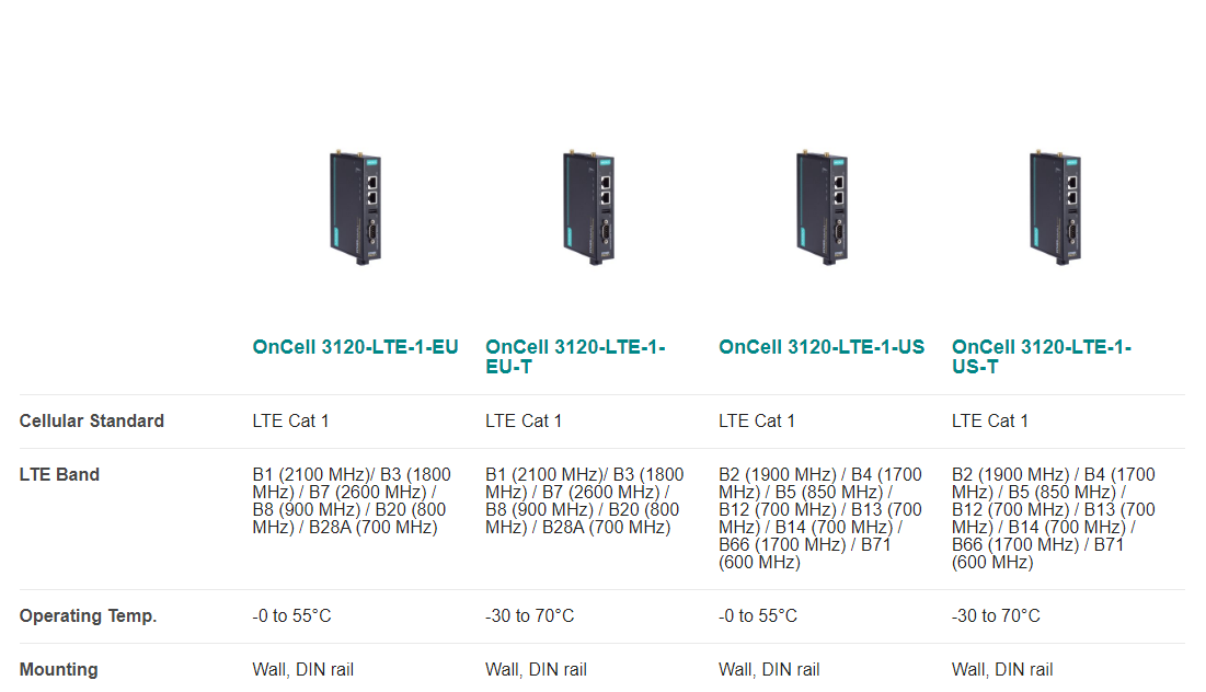 The OnCell 3120-LTE-1 Series is a set of reliable, secure, low power consumption LTE gateways with state-of-the-art global LTE Cat 1 coverage. These LTE cellular gateways provide reliable connections from remote serial and Ethernet devices to a cellular network so that your applications can be easily implemented for IIoT remote-access scenarios. With its efficient power saving features, the OnCell 3120-LTE-1 Series lowers power consumption to less than 40 mW when in standby mode which can be managed using schedules. To enhance industrial reliability, the OnCell 3120-LTE-1 features GuaranLink to ensure robust cellular connectivity.