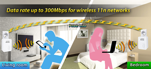 | Data Transfer Rate up to 200Mbps and Distance up to 300 Meters over Electrical Wiring With advanced HomePlug AV technology, the PL-510W provides users with stable, high speed data transfer rates up to 200Mbps on electric powerline length up to 300 meters. Therefore, the PL-510W can transmit multiple HD streams and even Full HD movies to every room, making it a great choice for easily building a multimedia entertainment network. |