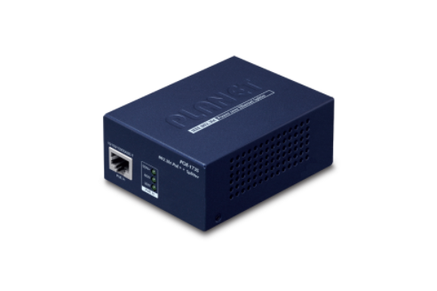 PLANET POE-173S Gigabit 802.3bt Power over Ethernet splitter, which delivers the Ethernet digital data and PoE power from an 802.3bt type-4 PoE++ PSE (power source equipment) over an UTP cable, comes with a selectable 12V, 19V or 24V DC DIP switch, enabling to deliver a maximum of 60-watt power output to a non-PoE powered Ethernet device. It supports passive 10/100/1000Mbps Ethernet connection and distance up to 100 meters.