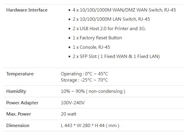 Gigabit Ethernet LAN/WAN and Active Fiber interfaces with load-balancing